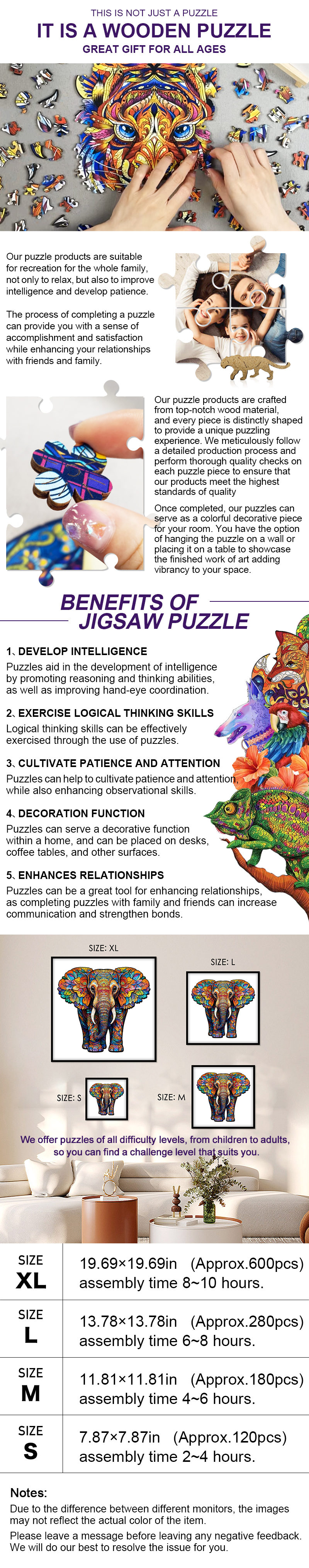 Elephant 3D Vision Wooden Jigsaw Puzzle
